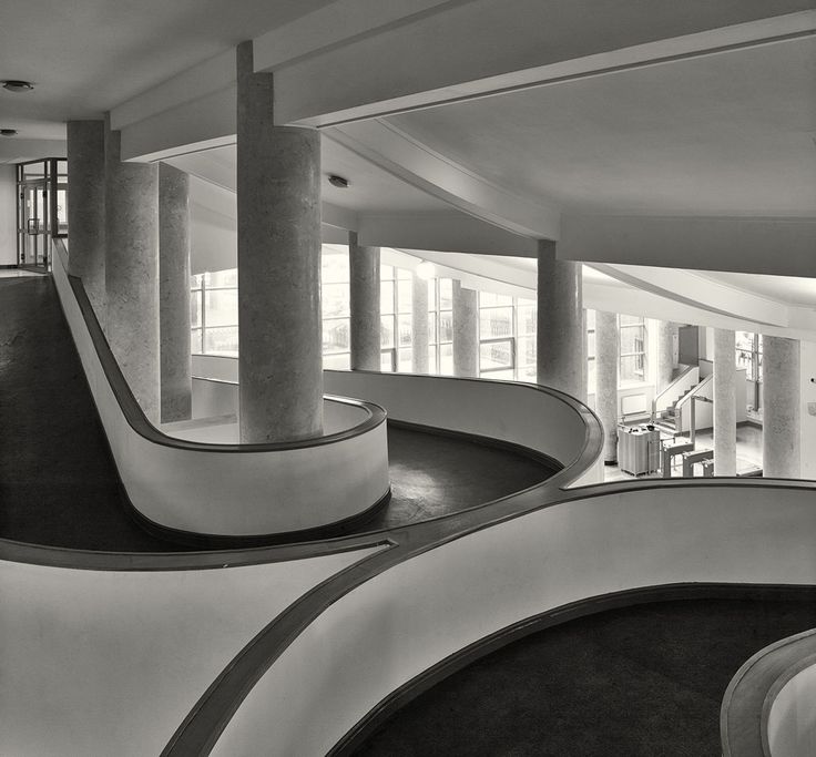 Внутренняя планировка здания Центросоюза тоже была абсолютно новаторской. Рабочие места — чуть ли не впервые в истории — были организованы по принципу open space, без громоздких перегородок. Даже традиционные лестницы Ле Корбюзье заменил пандусами с удобным наклоном в 14° (пройдут еще десятки лет, прежде чем идея «доступной среды» станет массовой), а обычные лифты — патерностерами, или лифтами непрерывного действия: такой лифт представлял собой открытую кабину без дверей, которая постоянно курсировала в шахте без остановок для посадки-высадки пассажиров.