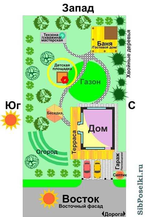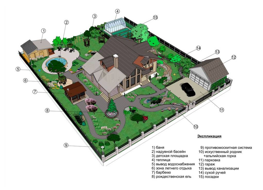 Очень важно попытаться разместить на территории самые необходимые объекты. Считается, что немаловажными составляющими любого проекта на небольшой территории являются:
