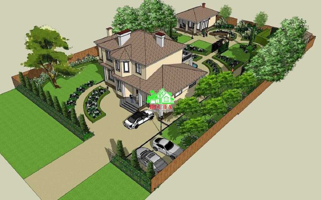 - предварительный расчет местонахождения сада, огорода, элементов ландшафтного дизайна;