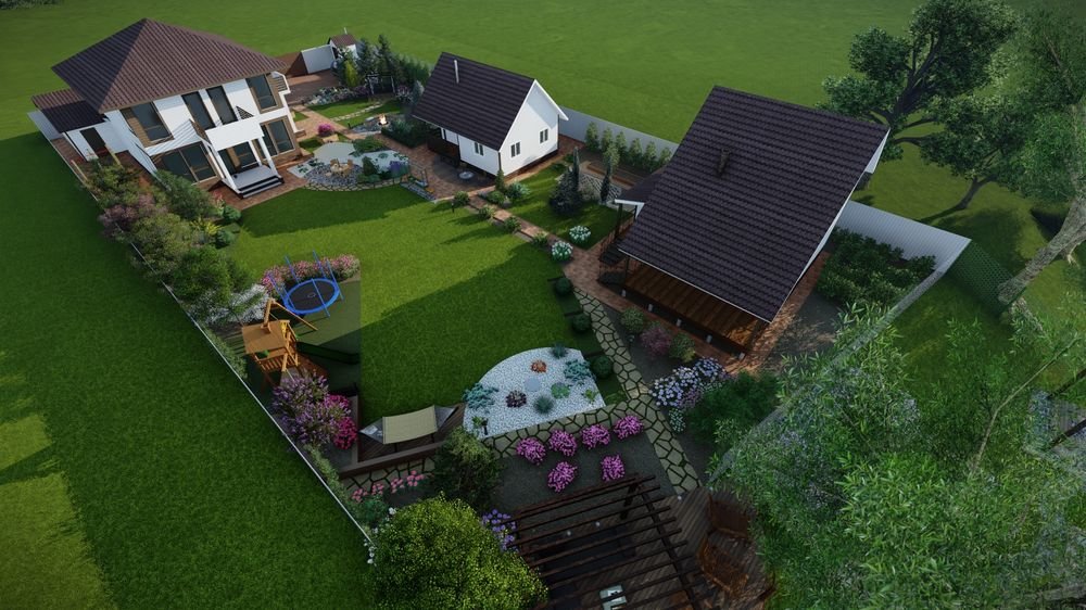 Главным объектом будет служить жилой дом , и с учетом его расположения выбираются места для газонов, цветников, посадки деревьев и кустарников. Не стоит загромождать территорию постройками, разбивать огромные цветники. Необходимо выбрать объекты, которые действительно необходимы, и правильно разместить их на участке.