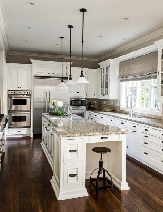 26. Классические деревянные табуреты для переходного дизайна кухни