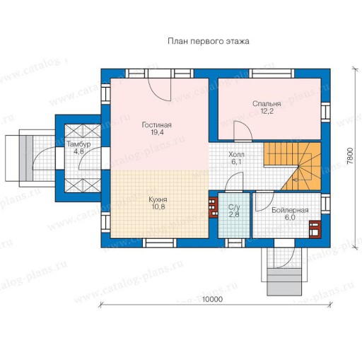 Проект дома из пеноблоков 8 на 10 – план первого этажа.