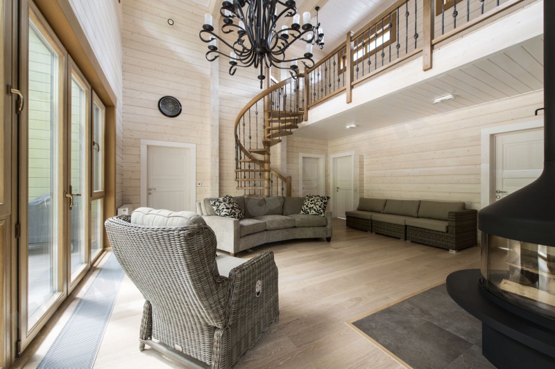 Обратите внимание: как правило, деревянные дома со вторым светом все же имеют как минимум два полноценных этажа, разделенных перекрытием. Лишена его лишь гостиная или кухня-столовая.