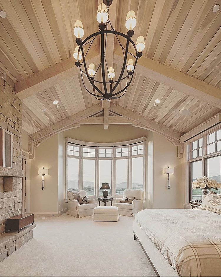 Для освещения деревянных рам прожекторы могут освещать участки потолка. Поскольку помещения обычно большие, лучше всего использовать лампу мощностью от 250 до 300 Вт. Люстры могут быть как крупными эффектными светильниками, так и очень маленькими галогенными лампами низкого давления.