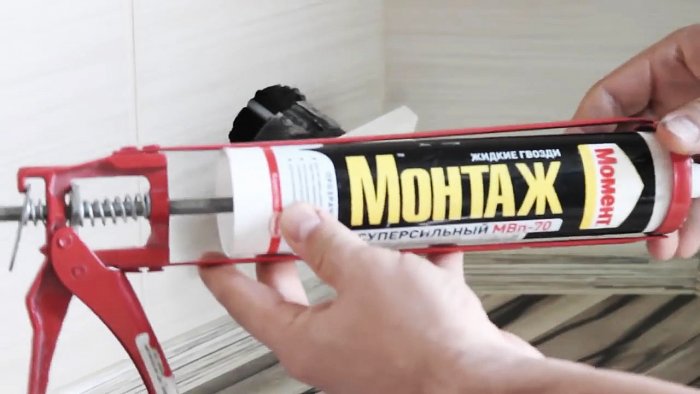 - Замазать жидкими гвоздями нужно все возможные щели.