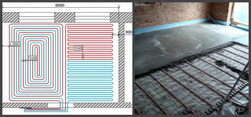 Для эффективного обогрева водяной контур укладывают под бетонную стяжку.