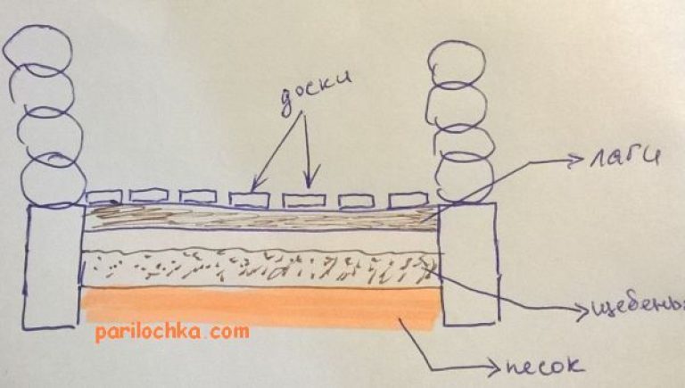 На сегодняшний день существует два метода, которыми выполняется в бане: непосредственно по грунту или на специальных лагах (создание вентилируемого подпола). Выбор технологии зависит от сметы, требований и условий выполнения работ.