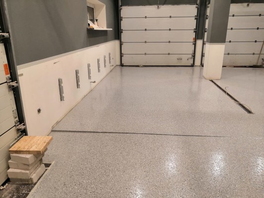 Эпоксидно-полиаспарагиновый пол Brindle от GarageExperts ® придает вид гранитного камня.