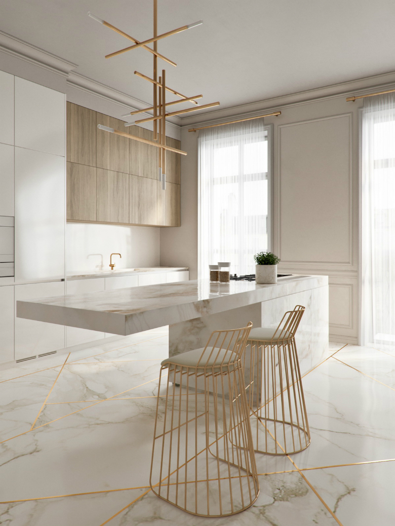 Мраморный пол перенесет вас в эпоху древней Греции или Рима. А пол из аквамарина, дополненный подсвечивающими лампами, позволит вам ощутить под ногами голубую гладь теплого моря с отражающимися в ней лучами летнего солнца.