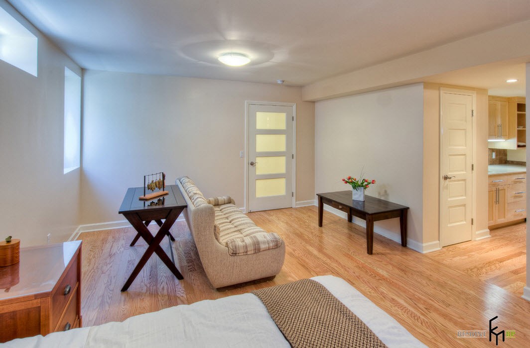 Пол должен быть либо светлее, либо темнее мебели. Идеально — на два тона, однако это не является железным правилом. Пол можно сделать в один цвет с мебелью лишь при условии, что на нем будет присутствовать покрытие, отвечающее требованиям дизайна в цветовом вопросе, то есть, исполненное в контрастных оттенках.