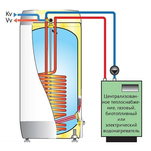 Так, например, есть водонагреватели косвенного типа. Такие устройства при работе не используют ни газ, ни электричество. Они получают тепло от других источников энергии. Поэтому, обычно, подключают такие водонагреватели к отопительному котлу. И удобнее всего подобный вариант бойлера использовать при наличии автономного отопления.
