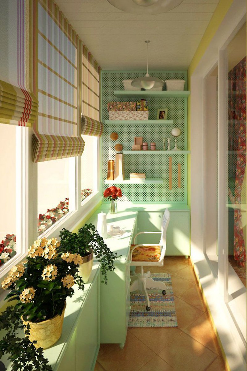 Прежде всего, решите, для чего вы хотите использовать данное помещение. Это может быть уютный уголок для отдыха с целой оранжереей внутри. Либо можно оборудовать небольшой рабочий кабинет. Все зависит от того, сколько места на вашем балконе и застеклен ли он.