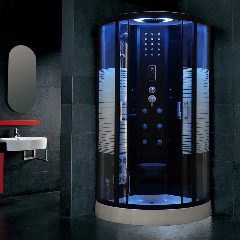 Timo T-7702 R. Фото: market.yandex.ruПродуманная душевая кабина с низким поддоном. Начнем с форм-фактора: его можно описать как полуовал. Внутри просторно, а площадь ванной комнаты кабина экономит. По всей кабине с десяток отверстий для гидромассажа, управляются они с сенсорного пульта. Есть подсветка, встроенное сиденье, радио и вентиляция.