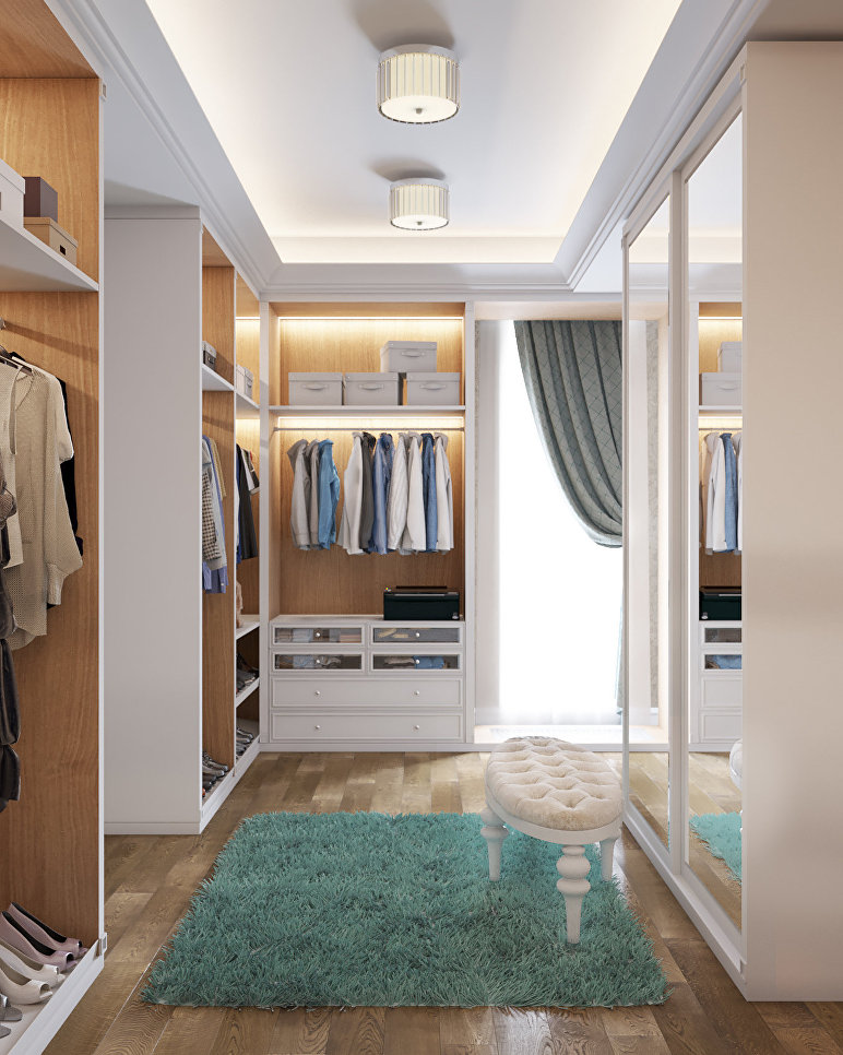 Отдельное помещение для хранения вещей – это невероятно удобно. Во-первых, в отдельной комнате наверняка поместится если не вся, то большая часть одежды и обуви. Во-вторых, все они – как на ладони, что экономит время на поиск нужных вещей.