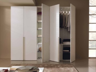 - Угловые модели. Оптимальный вариант, с помощью которого в небольшом пространстве легко создать объемное место хранения. Угловая конструкция мебели позволяет использовать незадействованные участки помещения. Ее недостаток – высокая стоимость. Сложность изготовления делает такую мебель немного дороже классического прямоугольного гардероба.