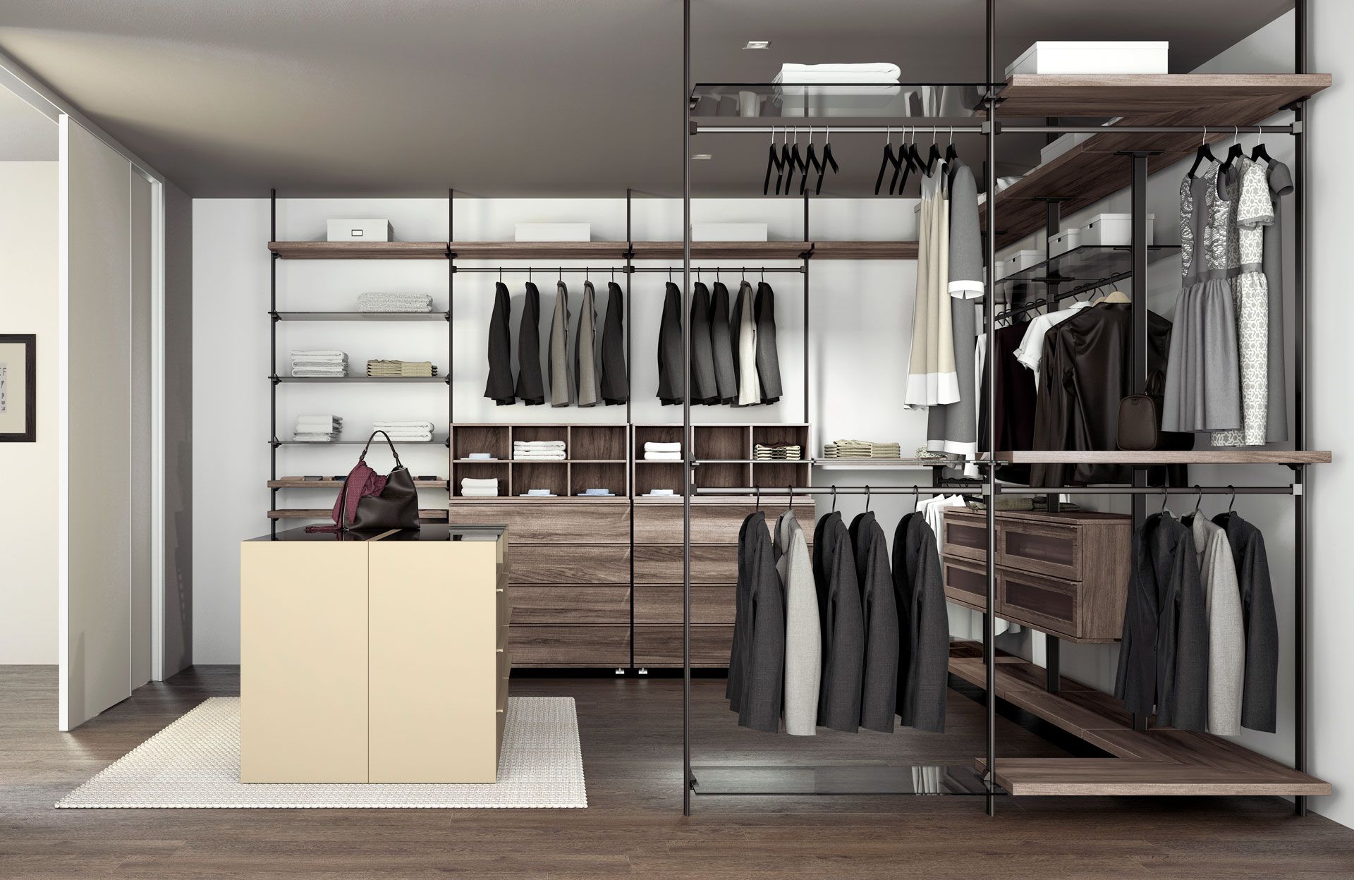 Если у вас нет возможности или желания отводить под гардеробную целую комнату, то можно организовать выделение пространства под системы хранения в спальне, кабинете или даже ванной комнате.