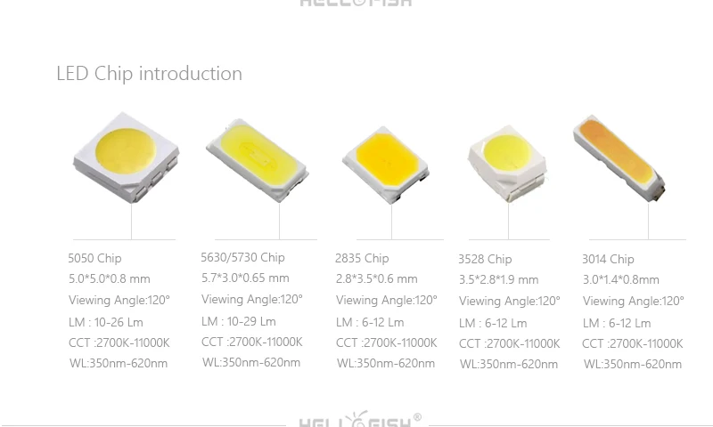 Параметр, на который необходимо обращать внимание в первую очередь. От него, как правило, зависит и количество излучаемого света. Ленты с более высокой потребляемой мощностью имеют больший световой поток. Он зависит от типа установленных светодиодов в модулях. Существует много типов разных светодиодов. Рассмотрим несколько из них на примере в таблице.