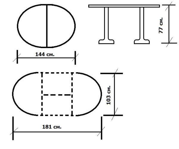 Чертежи раздвижных столов с указанием размеров готовой конструкции легко найти в интернете.