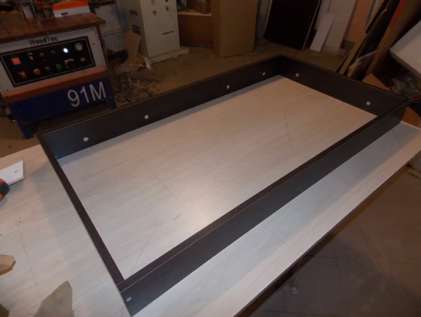 По периметру столешницы просверлить отверстия диаметром 5 мм с шагом 20 см под крепление усиливающего каркаса