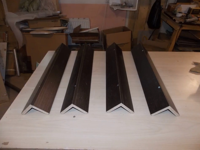Потом из боковин изготавливают П-образный короб, углы которого изнутри скрепляются алюминиевым уголком. Чтобы короб мог перемещаться над основой, на внутренней стороне боковых частей корпуса закрепляют обратные части направляющих.