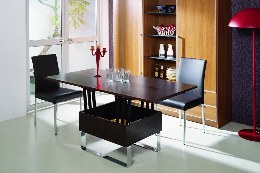 Стол-трансформер отличается своей необычной конструкцией, которая при некоторых простых манипуляциях увеличивает столешницу на треть, а то и в два раза. Таким образом, этот предмет интерьера открывает дополнительные возможности: