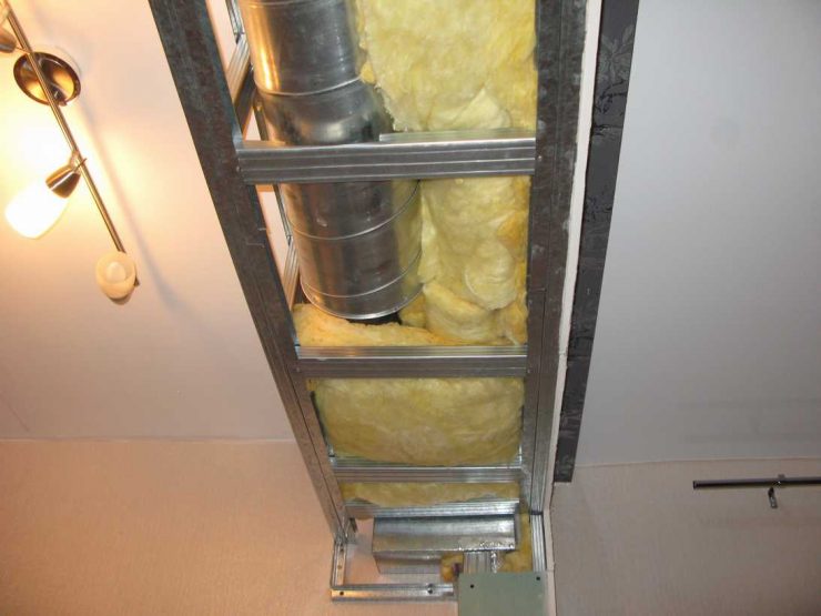 Составление плана относится к разряду подготовительных работ и включает в себя выбор размера и конструкции короба. Закрывать коммуникации нужно с созданием вентиляционного зазора, поскольку в противном случае под поверхностью гипсокартона будет образовываться влага. Ее накопление ускоряет коррозионные процессы и приводит к образованию плесени. Как правило, для обеспечения полноценной вентиляции достаточно 2-3 см свободного пространства, через которое излишки влаги будут выводиться наружу.
