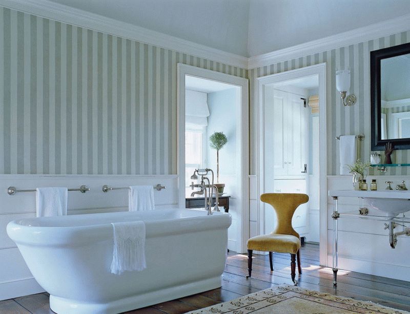 А вот обои клеить в ванной не принято, и это большая ошибка, потому что такая отделка позволяет: