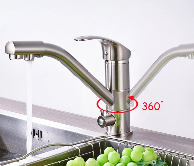 Как правило, эти краны оборудованы двумя изливами, из которых один простой, обеспечивающий подачу обычной воды для технических нужд, а другой оснащён фильтром. Подаваемую из него воду вы можете использовать для питья без риска за своё здоровье.