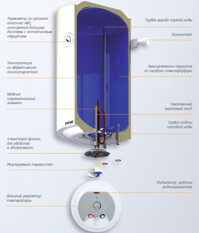 Устройство электрического накопительного водонагревателя