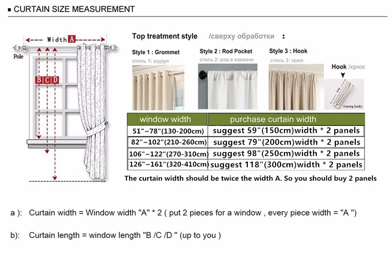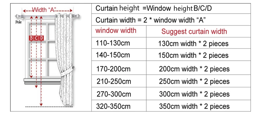 Чтобы получить правильные складки при закрытой шторе, умножьте ширину стержня/направляющей на два. Для более роскошного вида или если шторы полупрозрачные, умножьте ширину стержня/направляющей на три. Например: если ваш стержень/гусеница имеет ширину 36 дюймов (91 см), вам понадобятся шторы шириной не менее 72 дюймов (182 см) или две 36-дюймовые (91 см) полотнища штор.