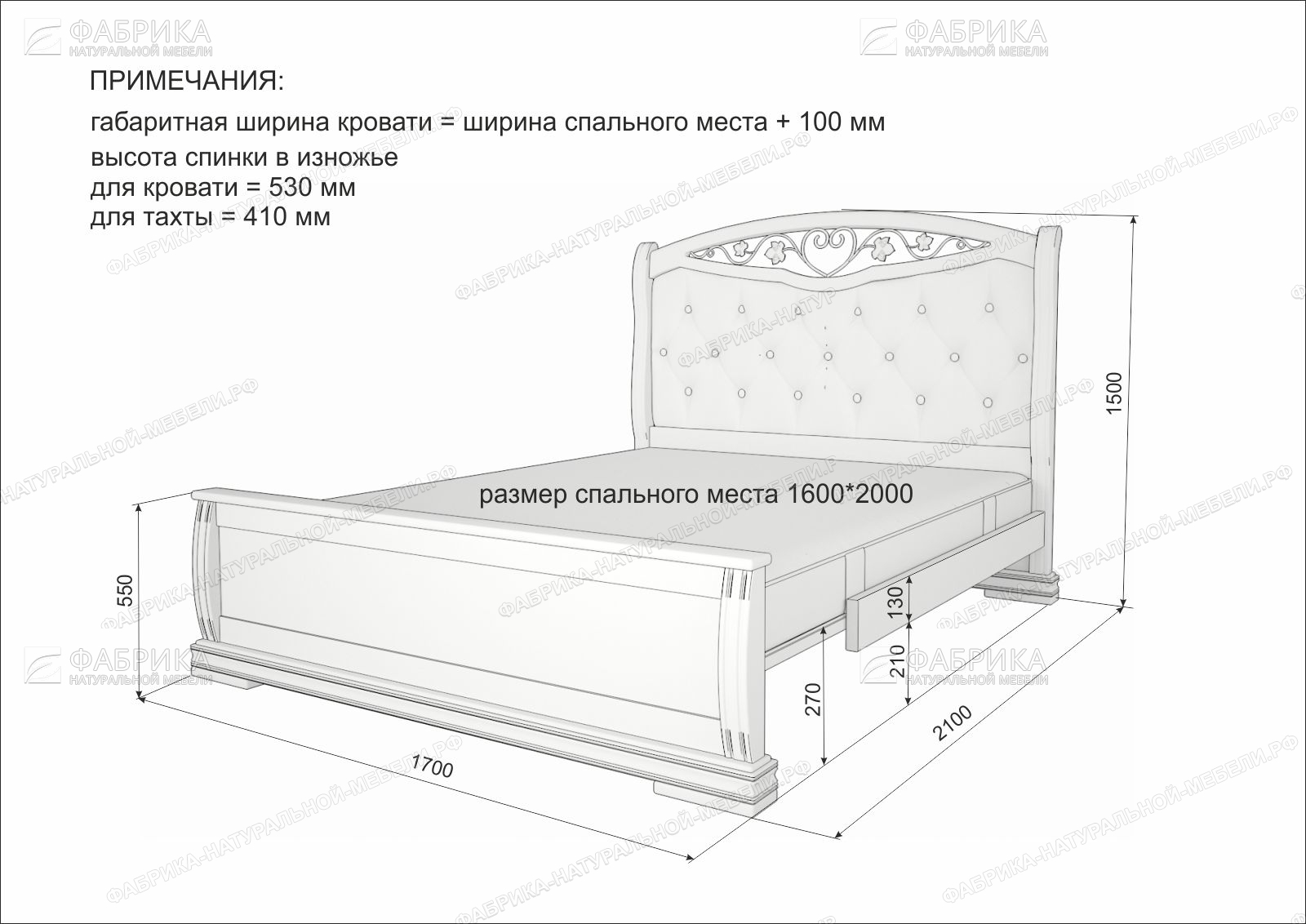 Размер спального места рассчитывается следующим образом: