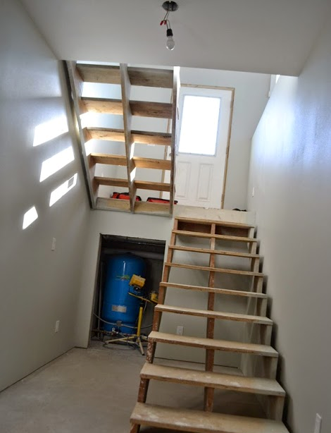 Если для вас важна стилистика оформления пространства под лестницей, то такие эффектные контрастные полки, гармонирующие с конструкцией лестницы — эффектное и модное решение.Как под лестницей сделать кладовку.
