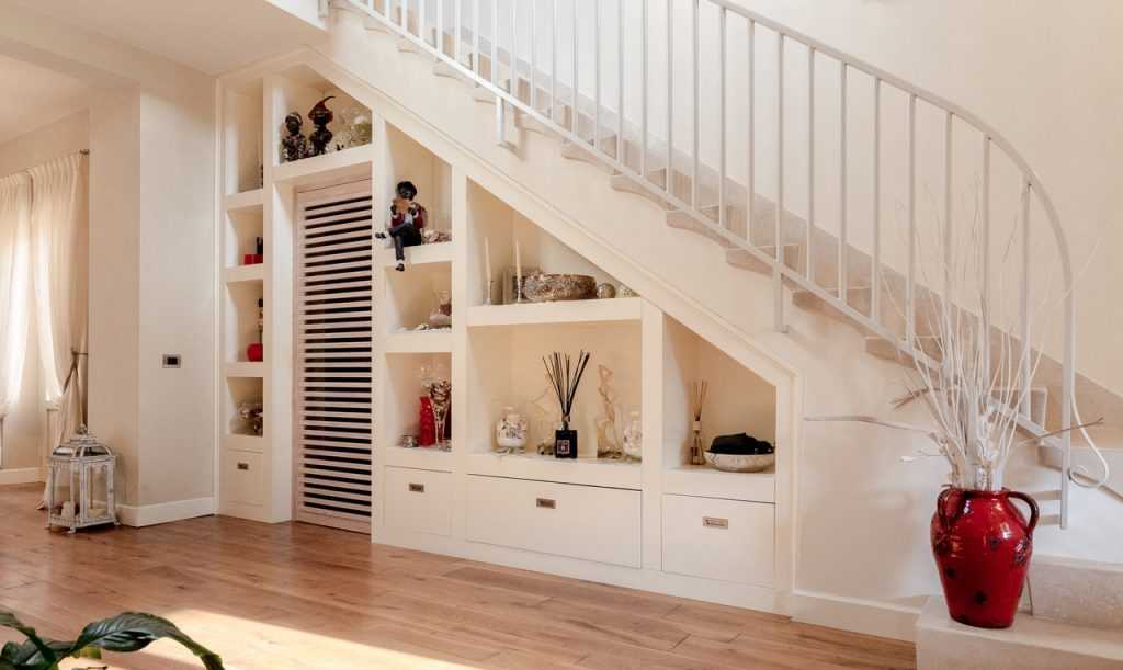 Когда конструкция находится в коридоре, то площадь под лестницей лучше использовать для гардеробной или шкафа, если в гостиной – под библиотеку, в кухне – чулан для консервации или посуды; - наличие технических коммуникаций, то есть освещения, водоснабжения, канализации и т.д., в зависимости от того, какую комнату вы хотите обустроить.