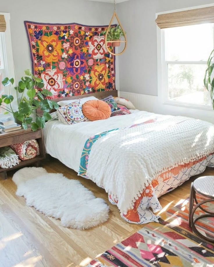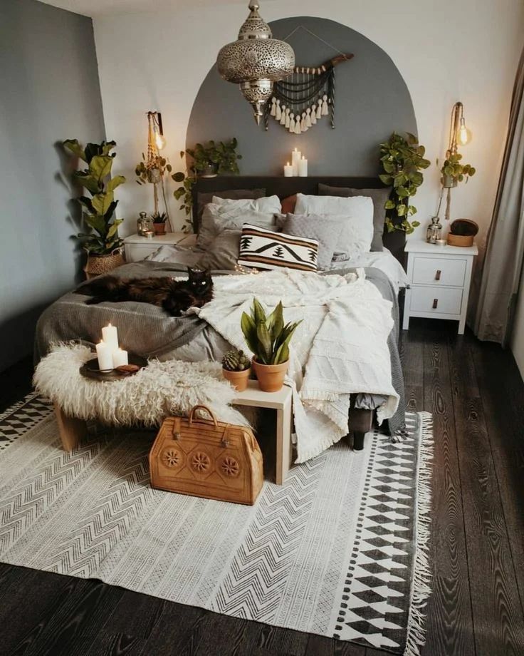 Независимо от того, есть ли у вас паркет, ламинат, плитка или ковер, ковер сыграет огромную роль в создании уютной богемной атмосферы в вашей спальне. В своей собственной спальне я заметил, что в тот момент, когда я положил ковер, я сразу же почувствовал огромную перемену.