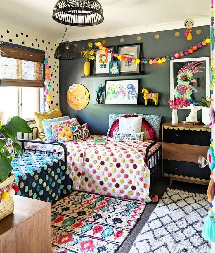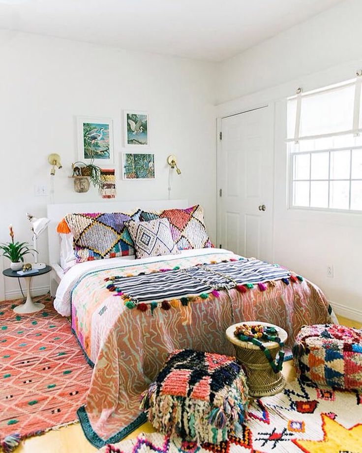 Яркие текстильные принадлежности идеально подойдут для спальни бохо