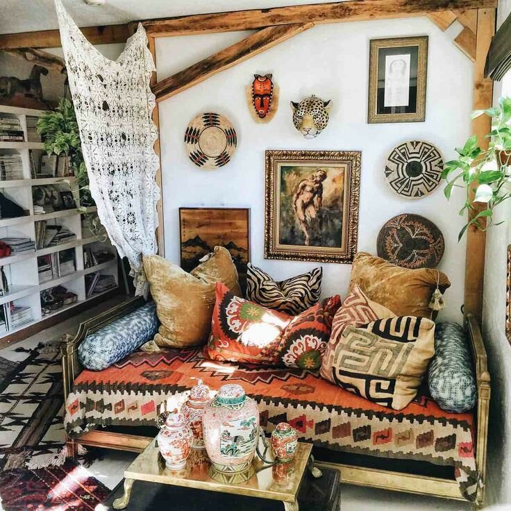 В основе богемного стиля бохо лежит вызов стереотипам, соединение искусства и интеллектуальности в интерьерном дизайне.