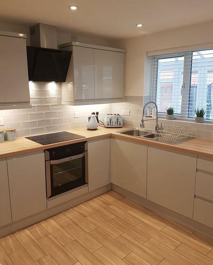 Классический кухонный уголок: L-образная кухня. L-образный дизайн кухни является классикой по одной причине — он хитроумно спроектирован, чтобы максимально использовать даже небольшую площадь для приготовления пищи. С рабочим пространством, состоящим из двух смежных стен, перпендикулярных друг другу. Поскольку для этого требуется только две смежные стены, он отлично подходит для углового пространства и очень эффективен для небольших или средних помещений. Г-образная кухня также представляет собой естественный «кухонный треугольник», из которого повар может работать быстро и эффективно.
