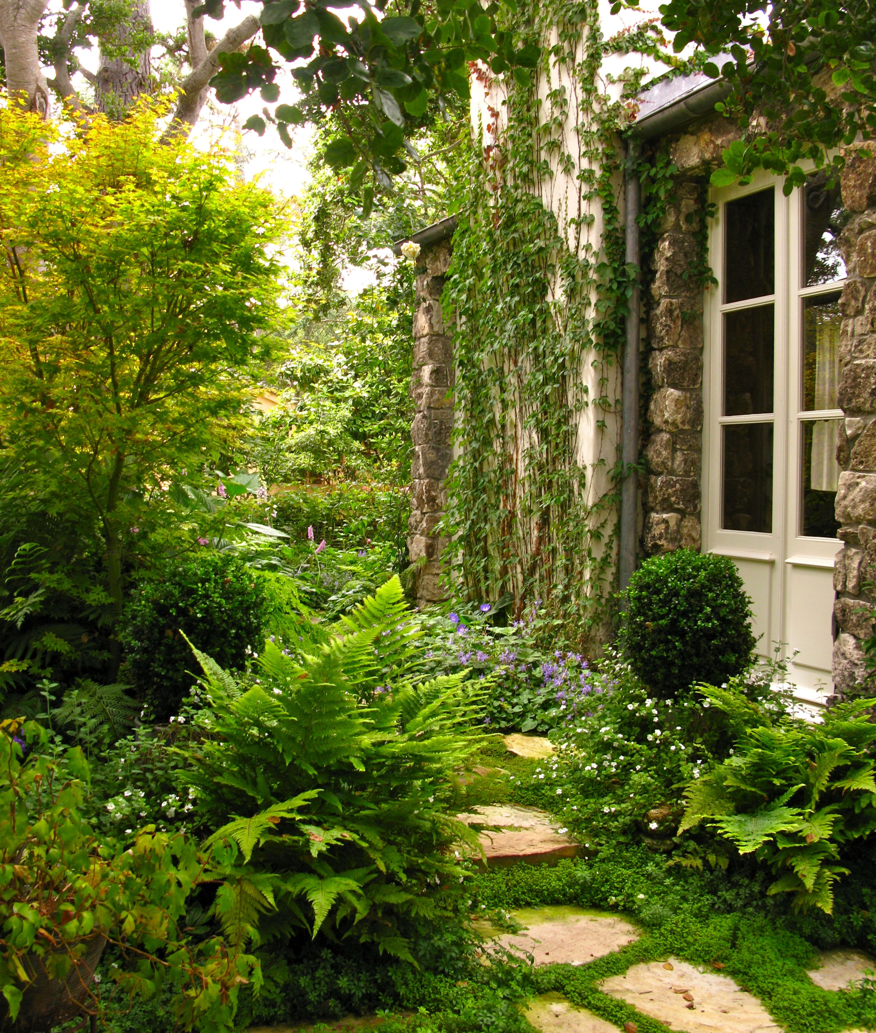 - В таком саду не увидишь стриженых газонов, бетонных или мощеных дорожек, цветников классического вида или больших архитектурных скульптур.