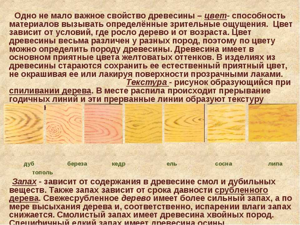 Как уже отмечалось, рисунок древесины лиственницы очень красив. Он имеет ярко выраженную структуру, особый шелковистый блеск и широкую гамму из 12 цветов: ее образуют светло-желтые, красные и золотисто-коричневые цвета.