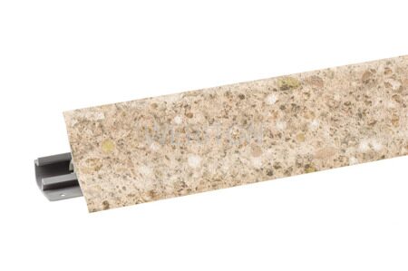 - Дерево — оно проходит обработку, повышающую устойчивость к внешним воздействиям. Волокнистую структуру закрывает защитная оболочка. Срез уязвим для влаги и всегда есть риск, что изделие придет в негодность. Перед тем как установить плинтус на столешницу, нужно убедиться, что он к ней подходит. Рисунок древесных волокон хорошо сочетается разными оттенками, но подобрать конкретный окрас под цвет столешницы бывает сложно.