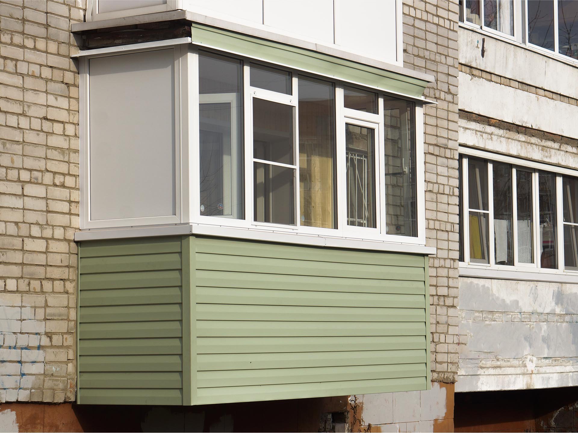 Отделка балкона снаружи сайдингом в тон зданию
