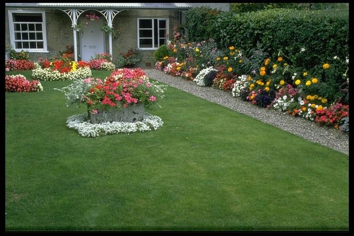 Самым традиционным и не менее прекрасным способом украсить газон являются цветы.