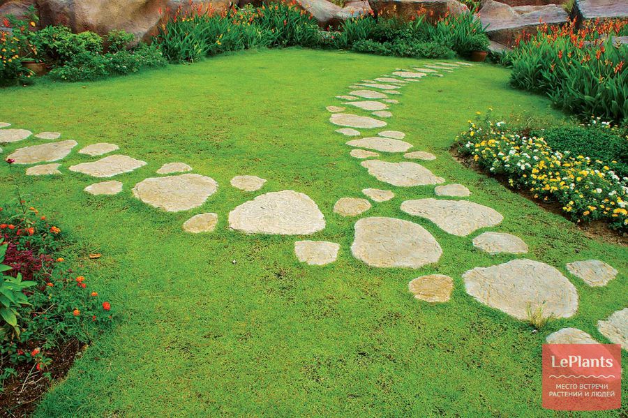 Прекрасно подходит для создания узоров и орнаментов на газоне камень, натуральный или искусственный.