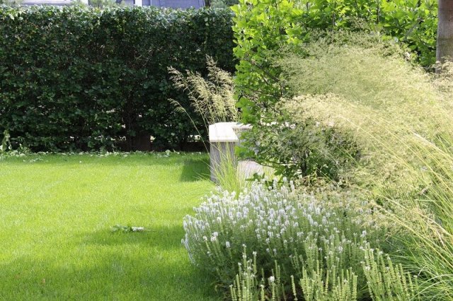Для зеленых монохромных лент — особенно во влажных и тенистых местах — можно также посадить хосты (лат. Hósta) и аквилегии (лат. Aquilégia).