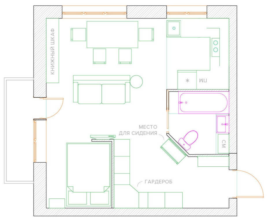 Перепланировка в однокомнатной квартире: Перепланировка однокомнатной квартиры — варианты планировок и идеи проектов — PEREPLAN Проектная мастерская