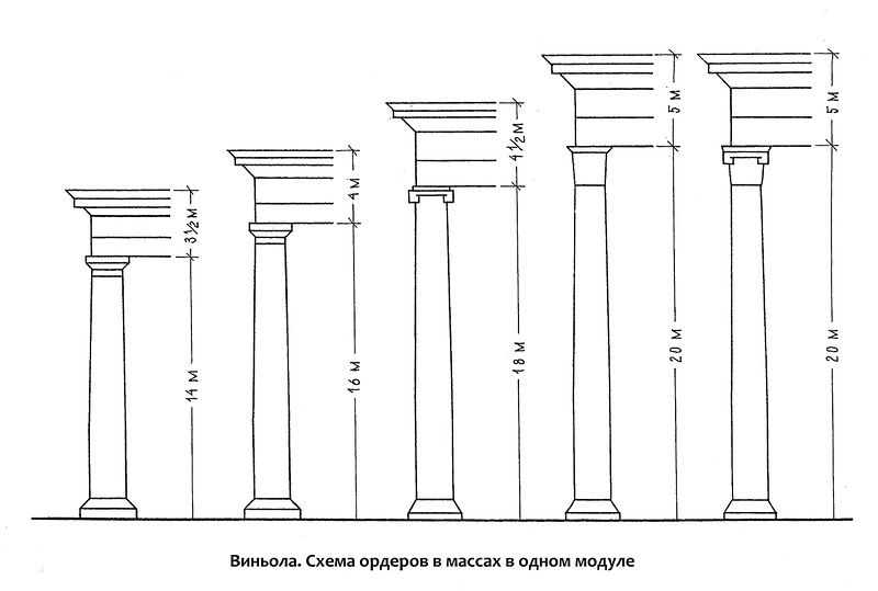 В зависимости от формы различают архитектурные ордера: тосканский, дорический, ионический, коринфский. Масштабом всех частей ордера является радиус колонны в ее нижнем основании. Этот радиус называют модулем и обозначают буквой М. В тосканском и дорическом ордерах модуль делят на 12 частей, а в ионическом и коринфском — на 18. Эти части называют партами и обозначают буквой П. Стержни колонн всех ордеров круглые.