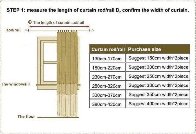Большинство готовых штор имеют следующую ширину: 117 см (46 дюймов), 168 см (66 дюймов) или 228 см (90 дюймов). Чтобы решить, какой из них вам нужен, измерьте длину рельса или столба (между наконечниками), а не окна. Это измерение является шириной каждой шторы и означает, что они будут иметь прекрасный, полный сбор, даже когда они закрыты.