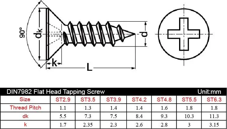 Саморезы же, предназначенные для вворачивания в металл (DIN 7976, 7981…7983), изготавливаются с большими углами (в основном 60º) для повышения прочности нитки резьбы у основания профиля. Кроме того режущая кромка изделия подвергается специальной упрочняющей термообработке, что обеспечивает твердость на ней 450HV.