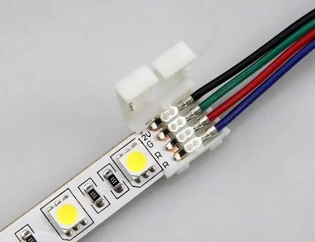 Наши светодиодные ленты ColorBright™ RGB 300 имеют 4 провода, которые должны быть подключены к соответствующим местам в контроллере RGB. Обратите внимание на маркировку индикатора на полосе.