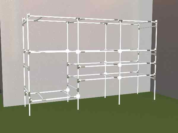 Размеры деталей необходимо планировать сугубо индивидуально, но комплект деталей всегда будет одинаковым. Вертикальные опорные элементы рекомендуется размещать на расстоянии не менее 80 см друг от друга. Для процесса сбора каркасной опоры необходимо использовать ПВХ трубы, которые покрыты слоем цинка как изнутри, так и снаружи. Диаметр таких труб должен быть равен не менее 1,5 см. В качестве полок можно использовать такой материал, как фанерные листы с высоким уровнем устойчивости к влажным средам.